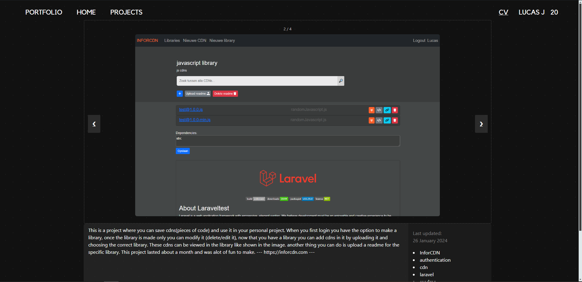 This is the website you are on right now made with Laravel 10, I am using the Gitlab API to get the projects dynamically with the corresponding data. I made this as a learning experience and as a portfolio. I learned alot about API handling and about postman. The project is called "Portfolio Laravel" because it was written in plain php before.
